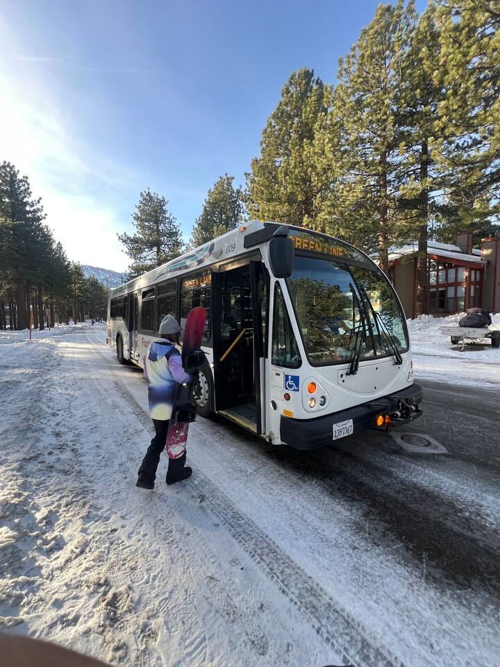 Guests have 2 parking spots available. For winter trips to the mountain, using the nearby shuttle service is recommended, and picks you up right at our doorstep. There are several restaurants and bars in walking distance throughout the year. Once the snow melts, e-bikes are a popular choice and can be rented from local shops, making exploring the town both easy and fun.